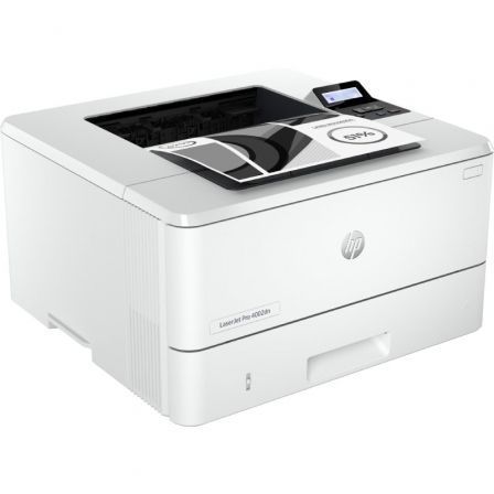La HP LaserJet Pro 4002dn es una impresora láser monocromo diseñada para entornos empresariales que requieren alta velocidad y eficiencia. Con una velocidad de impresión de hasta 42 páginas por minuto y una resolución de hasta 1200 x 1200 ppp, ofrece resultados nítidos y profesionales. Su conectividad incluye Ethernet Gigabit y USB 2.0, facilitando la integración en diversas infraestructuras de red. Además, cuenta con impresión automática a doble cara y una capacidad de entrada de papel de hasta 900 hojas con bandejas opcionales, lo que permite una mayor productividad sin interrupciones frecuentes para recargar papel.