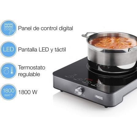 La lujosa placa de inducción Princess 303010 es una placa calefactora 'autónoma con un lujoso diseño en color negro. Su práctica pantalla LED 'hace que usar esta placa calefactora sea muy fácil y, además, gracias a 'su gran potencia, sus ollas y sartenes se calentarán rápidamente. Una 'excelente elección si necesita una superficie para cocinar extra en su 'hogar, residencia de estudiantes o cobertizo.