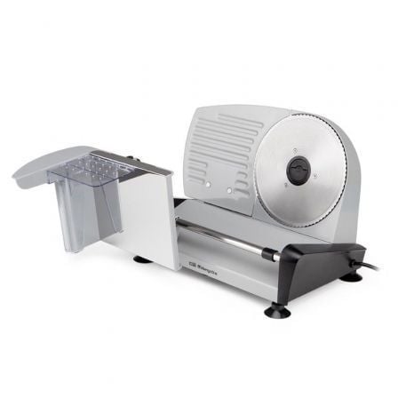Cuenta con una potencia de 150 W y una cuchilla de acero inoxidable de 190 mm que puede extraerse con facilidad para una mejor limpieza. Además, posee un práctico ajuste del grosor de entre 0 y 15 mm. Su funcionamiento es extremadamente sencillo e intuitivo. El deslizador y la bandeja para fiambres complementan el kit de este cortafiambres, que cuenta con el indiscutible sello de calidad de Orbegozo.