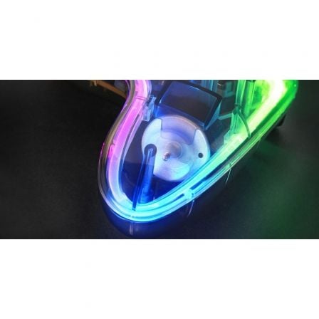 Gamepad con conexión inalámbrica profesional 2.4GPRO, sin lag y con la máxima estabilidad de conexión. Espectacular diseño translúcido negro con iluminación NEÓN RGB. Sistema de vibración háptica dual y compatibilidad superior multiplataforma.