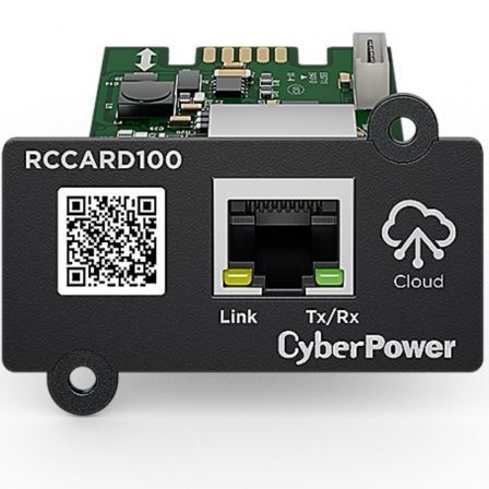 CyberPower RCCARD100 es un complemento de administración opcional para la serie específica de UPS CyberPower. Al insertar la tarjeta en la ranura de expansión en el UPS, los usuarios pueden agregarlo al sistema PowerPanel Cloud, permitiendo así la supervisión y administración remota del UPS, a través de un portal web seguro o aplicación móvil.