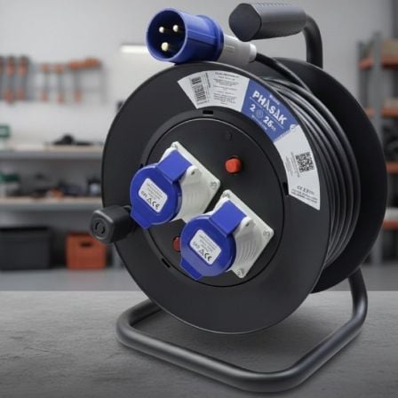 PHASAK BN 3411 es una regleta de alimentación enrollable con 4 tomas Schuko y 10 m de cable. Incluye protección contra sobretensión y asa para transporte, permitiendo un uso cómodo en talleres, obras y hogar/oficina.